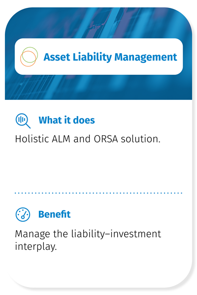 We help you turn these challenges into opportunities—with technology that integrates liabilities, investments, solvency, and climate risk in one consistent framework.