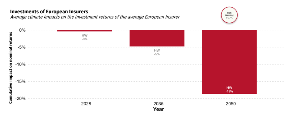 Their latest analysis, using its proprietary 2025 climate scenarios, shows that under the current high-warming trajectory, insurers are set to incur investment losses of up to 19%** (nominal) by 2050, with even greater losses in real terms due to persistent climate-driven inflation. These losses are largely driven by the accelerating impact of physical risks and inflation linked to climate change.