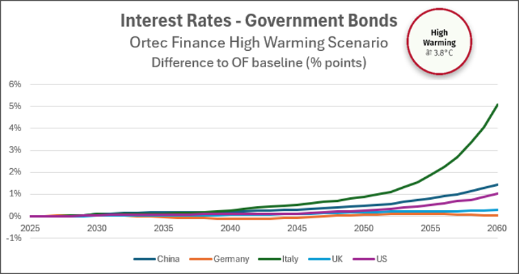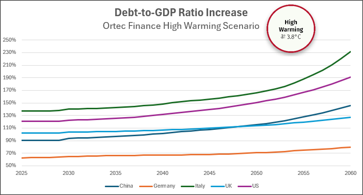 The latest figures show that the costs of climate change alone could drive up debt-to-GDP ratios in the UK to 114% by 2050 from 102% in 2025, and to 151% from 121% in the US.