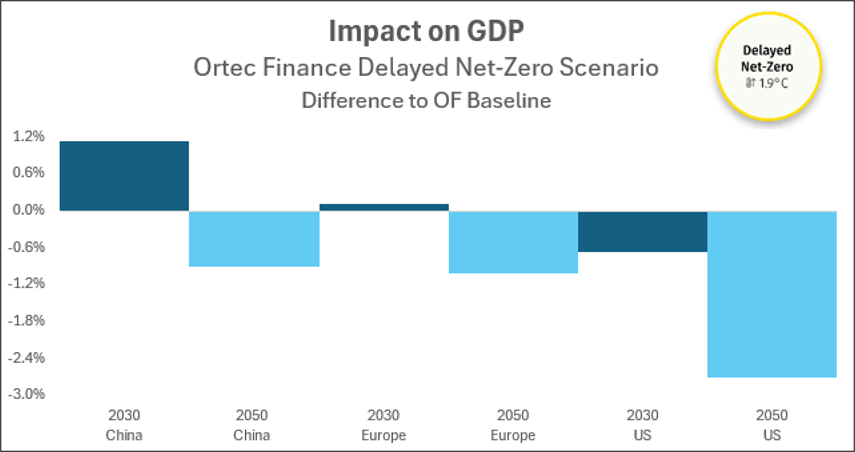 Delayed transition to net zero signals financial market disruption and sustained macroeconomic strain.