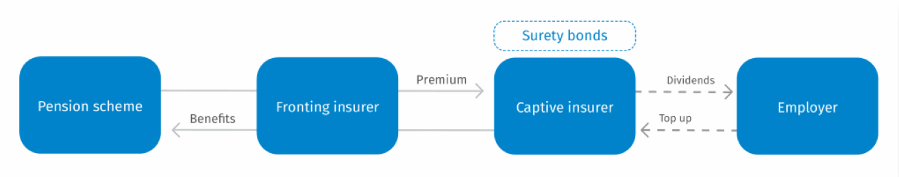 In terms of the set-up of the arrangement, the pension scheme enters into a bulk annuity transaction with a fronting insurer (buy-in), which then reinsures the pension liabilities to the sponsor’s captive insurance company.
