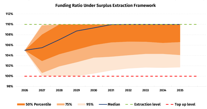 - Excess surplus is extracted when the funding ratio is over 110% on the low-dependency basis at the year-end; and