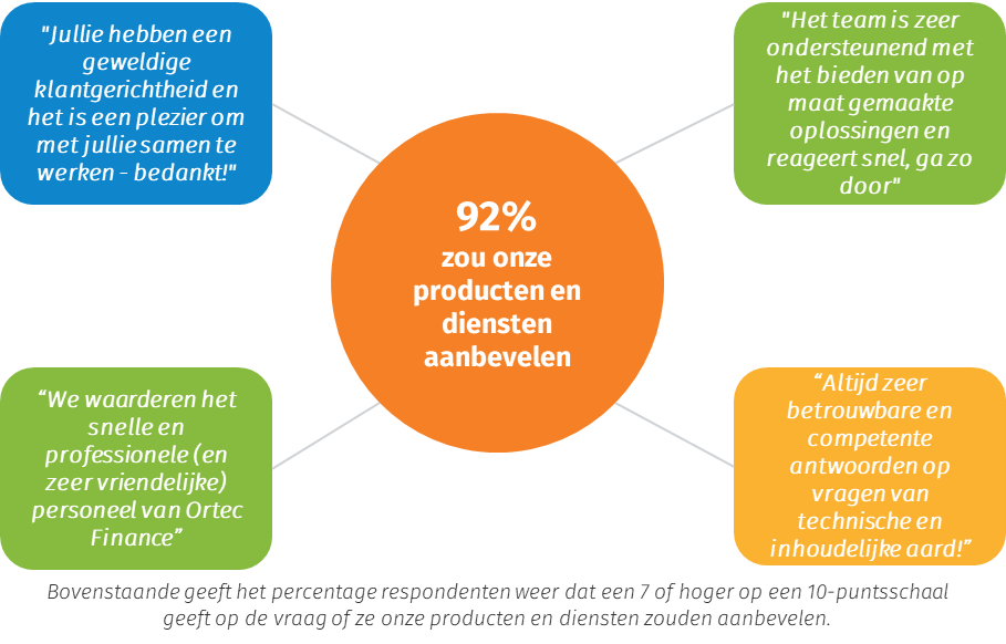 - 87,7% van de ondervraagde klanten gaf aan van plan te zijn hun zakelijke relatie met Ortec Finance de komende jaren voort te zetten.