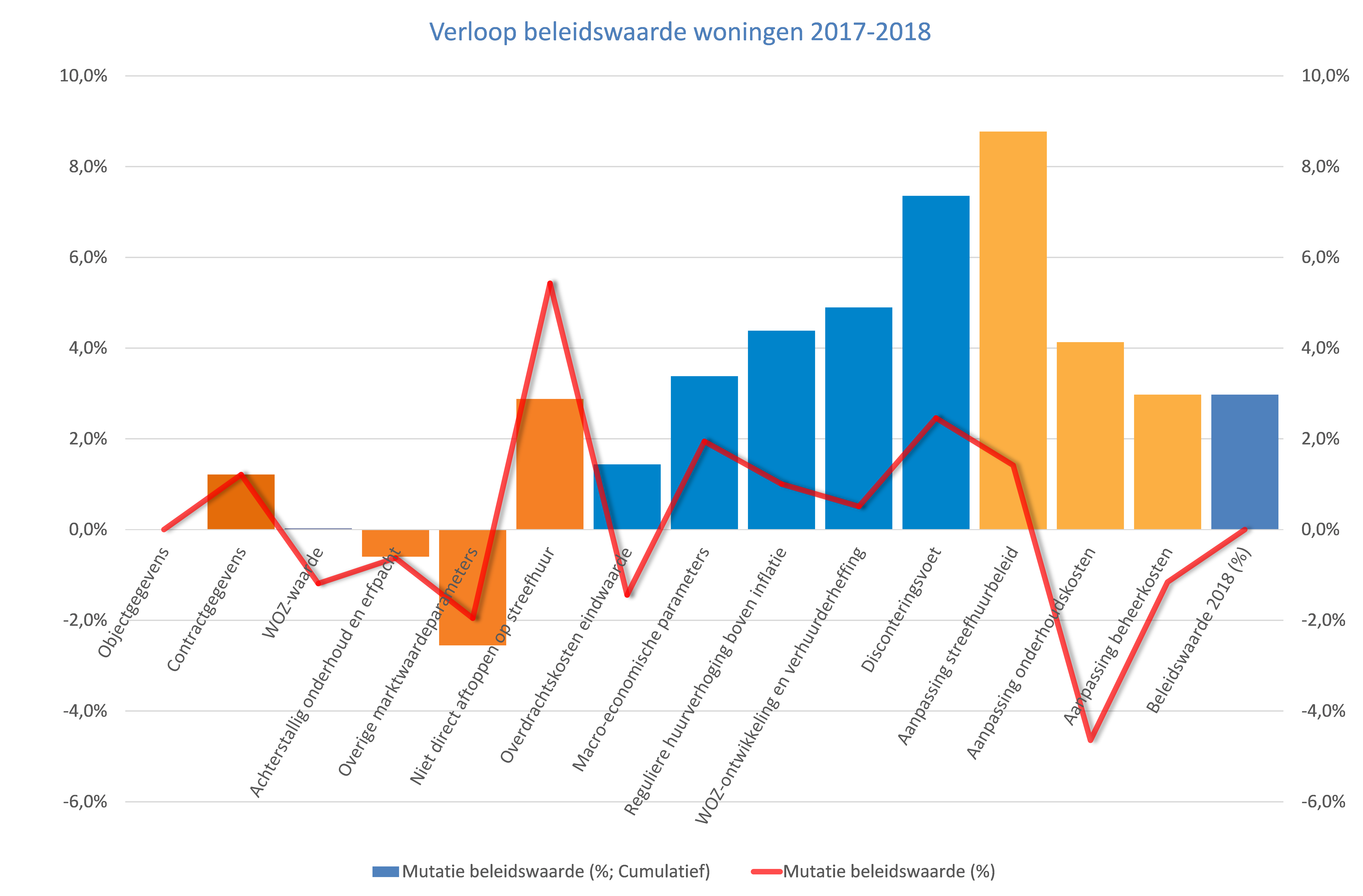 “De beleidswaarde in de jaarrekening 2018 biedt de eerste mogelijkheid om een vergelijking te maken met de beleidswaarde 2017. Verschillen in de marktwaarde, zoals bijvoorbeeld de aanpassing van de disconteringsvoet en onderhoud zijn zelf goed te duiden.