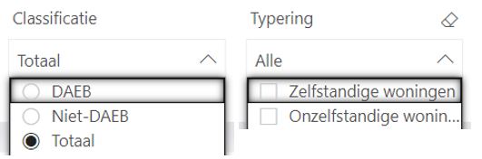 Figuren 1 en 2 zijn gebaseerd op de totale corporatie. Het is ook mogelijk om in te zoomen op de DAEB en Niet-DAEB tak en de zelfstandige en onzelfstandige woningen. Zie figuur 3.