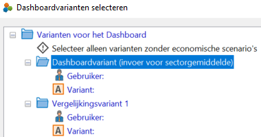 Figuur 4: Selectievenster in WALS om een dashboardvariant en een vergelijkingsvariant te selecteren.
